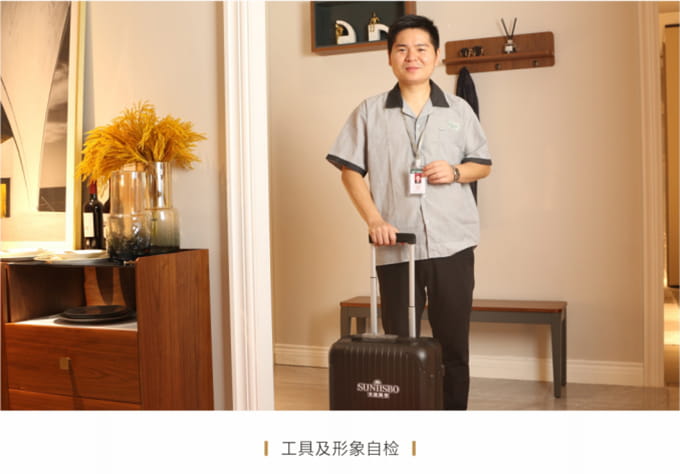 物資準(zhǔn)備:上門前必須著圣蒂斯堡統(tǒng)一工作服,佩戴工作證,準(zhǔn)備好安裝工具、搬抬工具(搬運(yùn)背帶等)、備件、筆記本、手套、鞋套、地墊、衛(wèi)生清掃工具(清潔劑、抹布、掃把簸箕、拖把、吸塵器等)、瓶裝水、《圣蒂斯堡安裝施工指示牌》、收據(jù)和圣蒂斯堡產(chǎn)品說(shuō)明書、《產(chǎn)品配送單》和《配送滿意度調(diào)查表》等物品。再帶上小禮品,例:鮮花或碳包去味禮包等。
