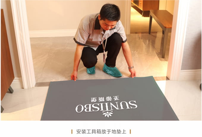 1、征得客戶同意后在客戶指定地點(diǎn)進(jìn)行產(chǎn)品安裝,安裝過(guò)程中將提前準(zhǔn)備好的小地毯/地墊放置于地上,安裝工具箱放于地墊上,不要在家具或地板上亂放,以免散落面板或地面上造成磨損。