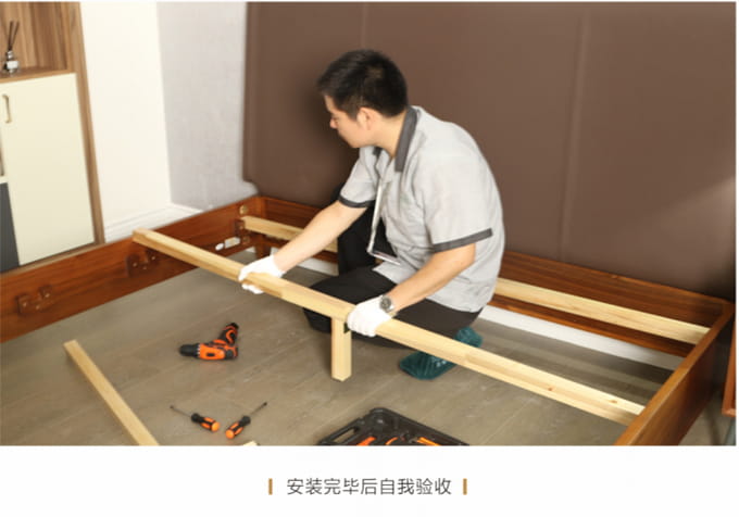 安裝并檢查完所有工作后,需與客戶清點(diǎn)并確認(rèn)產(chǎn)品,將所有帶電源的家具插上電源,告知客戶家具使用方法和功能及保養(yǎng)知識(shí)、注意事項(xiàng)等。所有帶功能的產(chǎn)品需演示給客戶看。例: