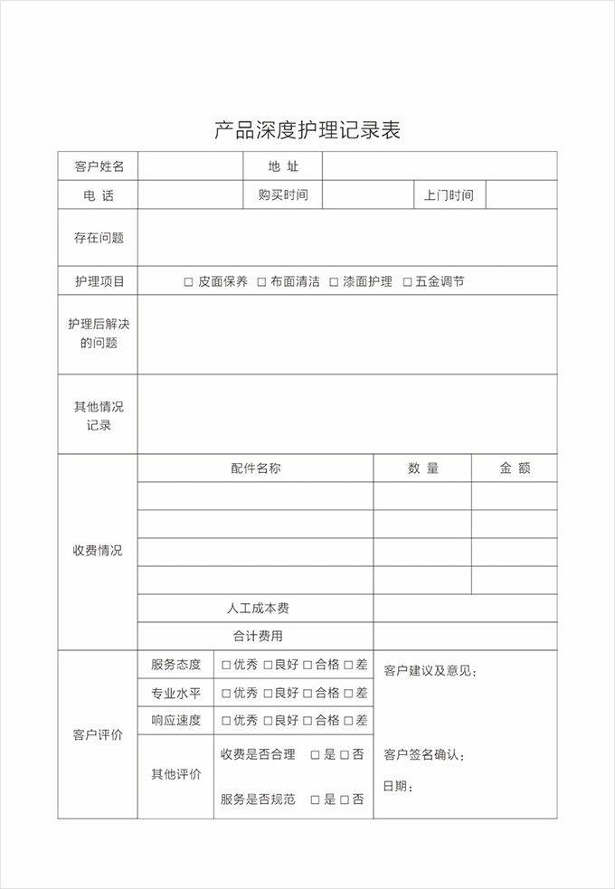 按要求認(rèn)真填寫服務(wù)記錄單據(jù)并請(qǐng)顧客填寫相應(yīng)內(nèi)容及簽字,離開(kāi)顧客處時(shí)除了與顧客本人告別外,還需要向有關(guān)負(fù)責(zé)人打招呼,詢問(wèn)是否還有其他問(wèn)題,當(dāng)?shù)玫筋櫩偷臐M意允許后,方可離開(kāi)。