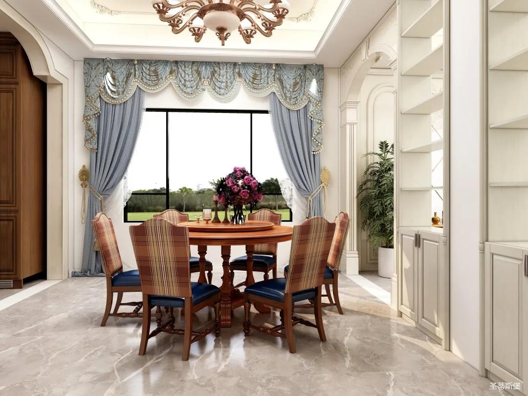 新古典風(fēng)格中填入少量的傳統(tǒng)裝飾,與美式和諧相融。精細(xì)的實木手工雕刻,傳統(tǒng)形狀的基礎(chǔ)韻味與美式的細(xì)節(jié)取長補(bǔ)短。不但富有審美的愉悅,更重要的是令居住舒適而貼近自然。背景墻更是復(fù)古與潮流的完美結(jié)合,具有經(jīng)典卻簡潔的圖案、復(fù)古卻時尚的色彩,既包含了古典風(fēng)格的文化底蘊(yùn),也體現(xiàn)了現(xiàn)代流行的元素。