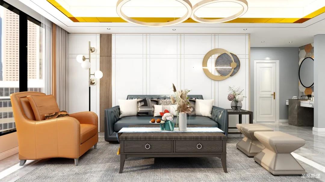客廳延續(xù)著美式輕奢的氣韻,背景墻被簡約有序的金屬線條分割,營造出質(zhì)感空間的細(xì)膩。沙發(fā)沉穩(wěn)又不失時(shí)尚,色彩混搭更是讓人耳目一新,展現(xiàn)著美式風(fēng)格天性自由不羈的浪漫個(gè)性。