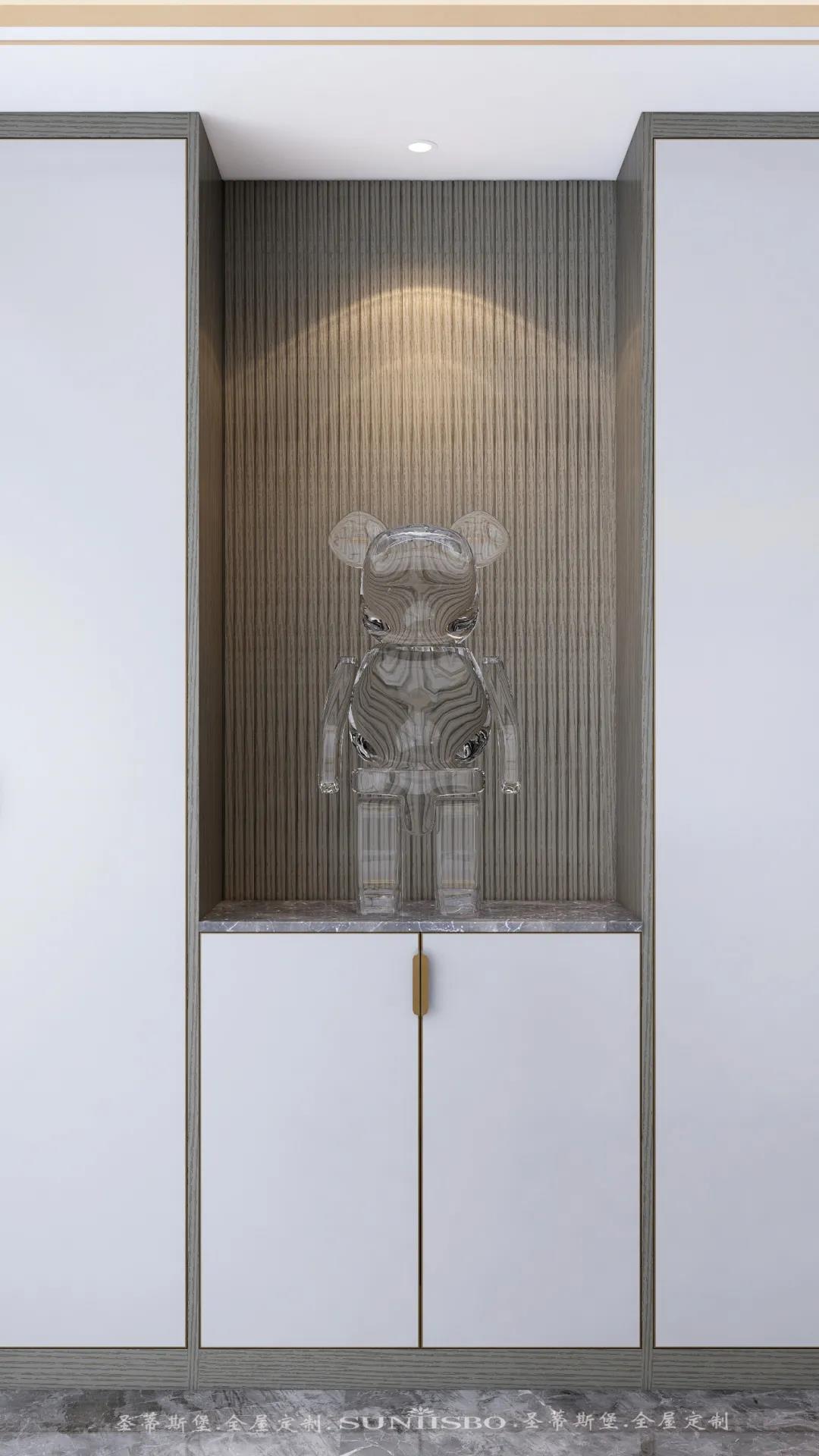 在細(xì)節(jié)設(shè)計之中,設(shè)計師以實木+紋理,營造一派簡約輕奢之感,看似沒有繁雜的元素修飾,卻讓家多了一份高級感。