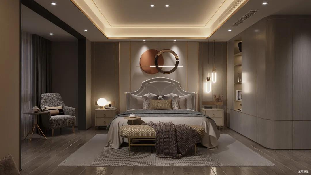 臥室空間整體以護墻板定制為主,整體設計注重空間簡約、自然,沒有繁雜的裝飾。結合業(yè)主對理想家的想象,采用暖色調來襯托溫馨實感,延伸業(yè)主對家的定義,用最質樸的木紋融合極簡線條平鋪的形式,體悟自然的溫度,為都市生活帶去不一樣的體驗感。