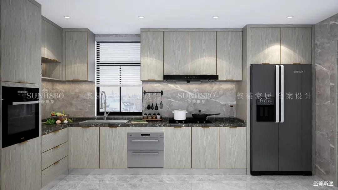 廚房餐邊柜的設(shè)計不遺余力的表達(dá)了收納充足藏而不漏,空間經(jīng)過設(shè)計斟酌,將木元素作為空間主流,柜體上最能體現(xiàn)質(zhì)感的歲月紋理,既是工藝升級的表現(xiàn),又是時尚的標(biāo)志。