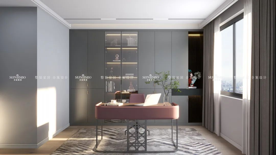 啞灰的定制書柜,冷靜理性,帶來(lái)思緒上井然有序的細(xì)密邏輯。天然原生的光感,讓視覺(jué)達(dá)到完美平衡。書房特意配上多裂綠植,讓現(xiàn)代簡(jiǎn)約與傳統(tǒng)文化結(jié)合,萌發(fā)出別出心裁的設(shè)計(jì),展現(xiàn)業(yè)主對(duì)傳統(tǒng)文化情結(jié)的喜愛(ài)。